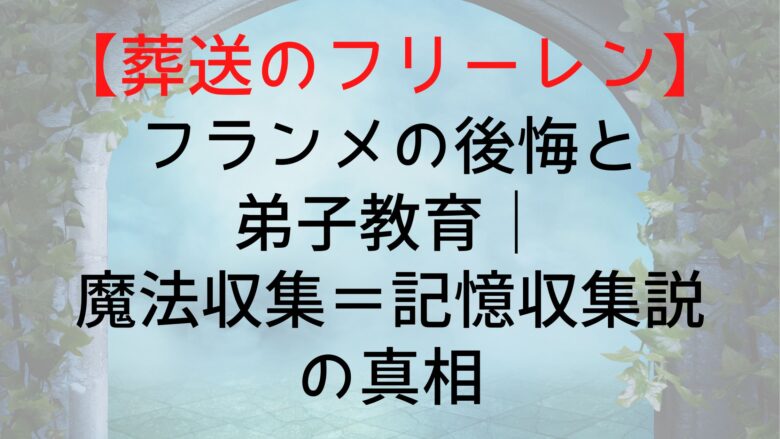 フランメは何に後悔し弟子教育を行なっていたのか、魔法収集が記憶収集説といわれる真相はどこにあるのでしょうか。